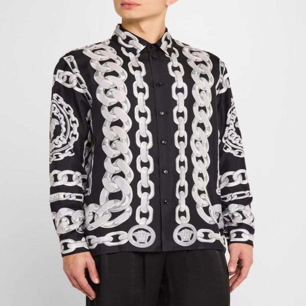 This shirt captures Mike Sorrento’s distinctive, magnetizing style via its bold chain motif. It is fabricated in breathable cotton material with an open button-front and shirt-style collar. Full sleeves with open-hem cuffs complete the look, giving it an elegant yet versatile appeal.