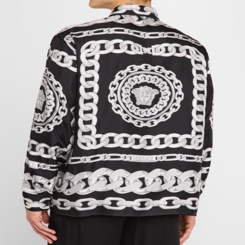 • Pattern: Black backdrop with silver chain print