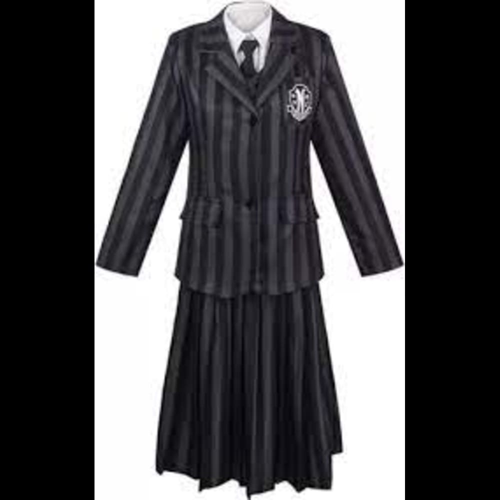 With the Wednesday Addams Nevermore Academy Uniform, you don’t just wear a costume—you step into the hauntingly stylish world of Nevermore, embracing mystery, individuality, and timeless gothic fashion.