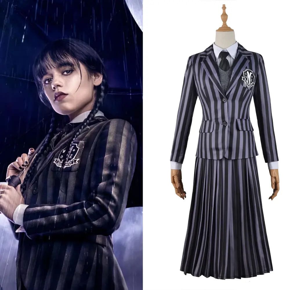 Perfect for Halloween, cosplay conventions, fan events, or as a collectible for lovers of gothic fashion, this uniform is more than just clothing—it’s a representation of Wednesday Addams’ unique personality and iconic aesthetic. Its versatile design allows you to style it in multiple ways, whether you want a full cosplay-ready outfit or a statement piece for your alternative wardrobe.