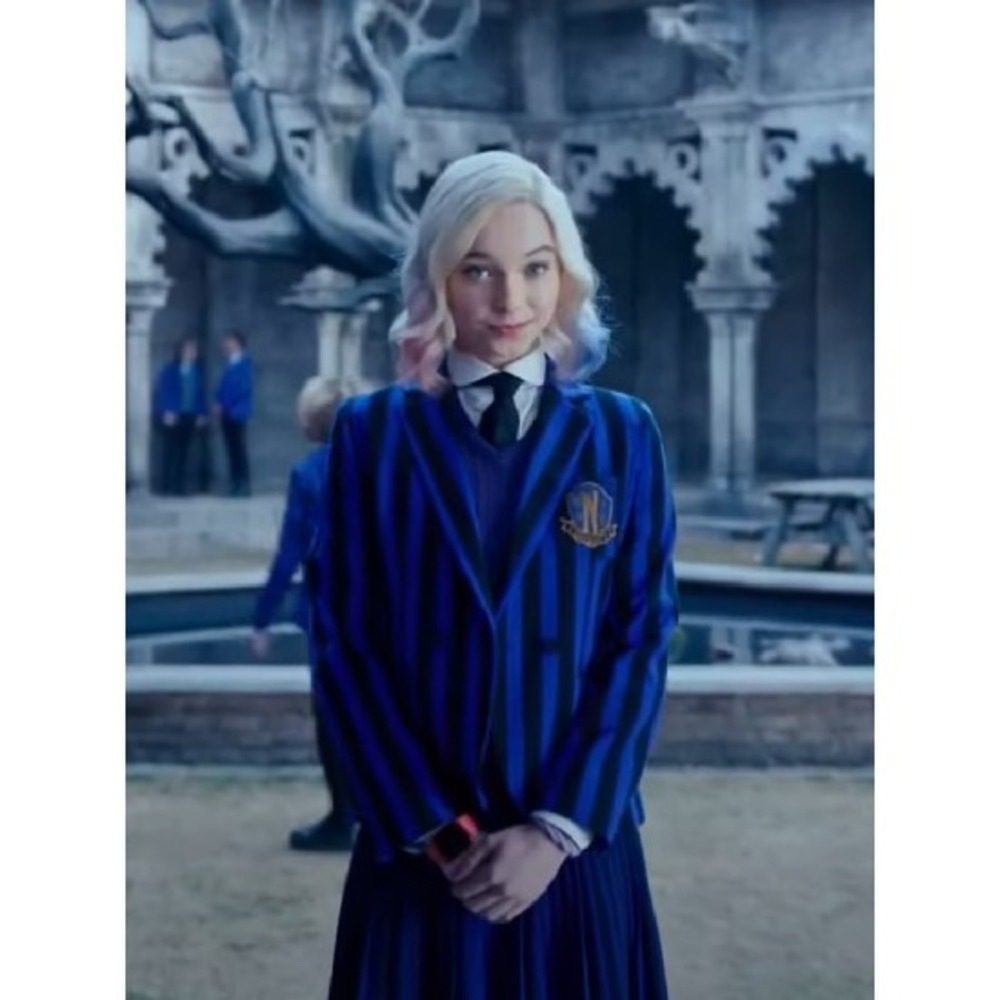 More than just a uniform, the blazer symbolizes Enid’s attempt to fit into a world